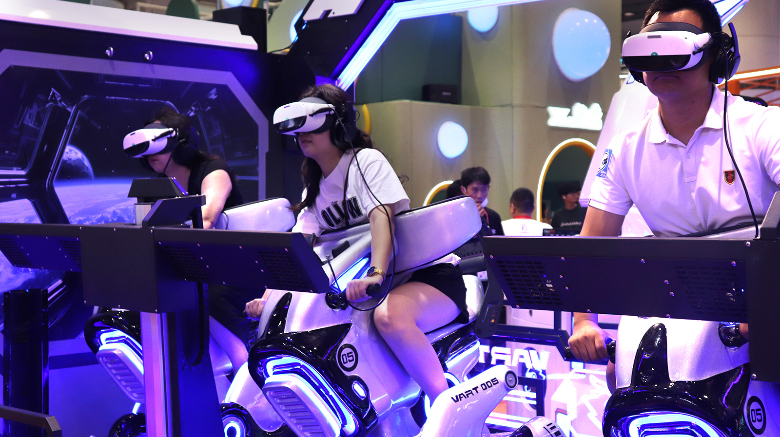 騎幻時空4人,是2024年全新推出的第二代VR乘騎設(shè)備,行業(yè)首次將輕量化特效升降模組,電動安全壓桿保護(hù),射擊互動交互內(nèi)容結(jié)合起來的乘騎體驗(yàn)。豐富的全感特效加上公司自主研發(fā)的新型運(yùn)動機(jī)構(gòu),沉浸的五感體驗(yàn)